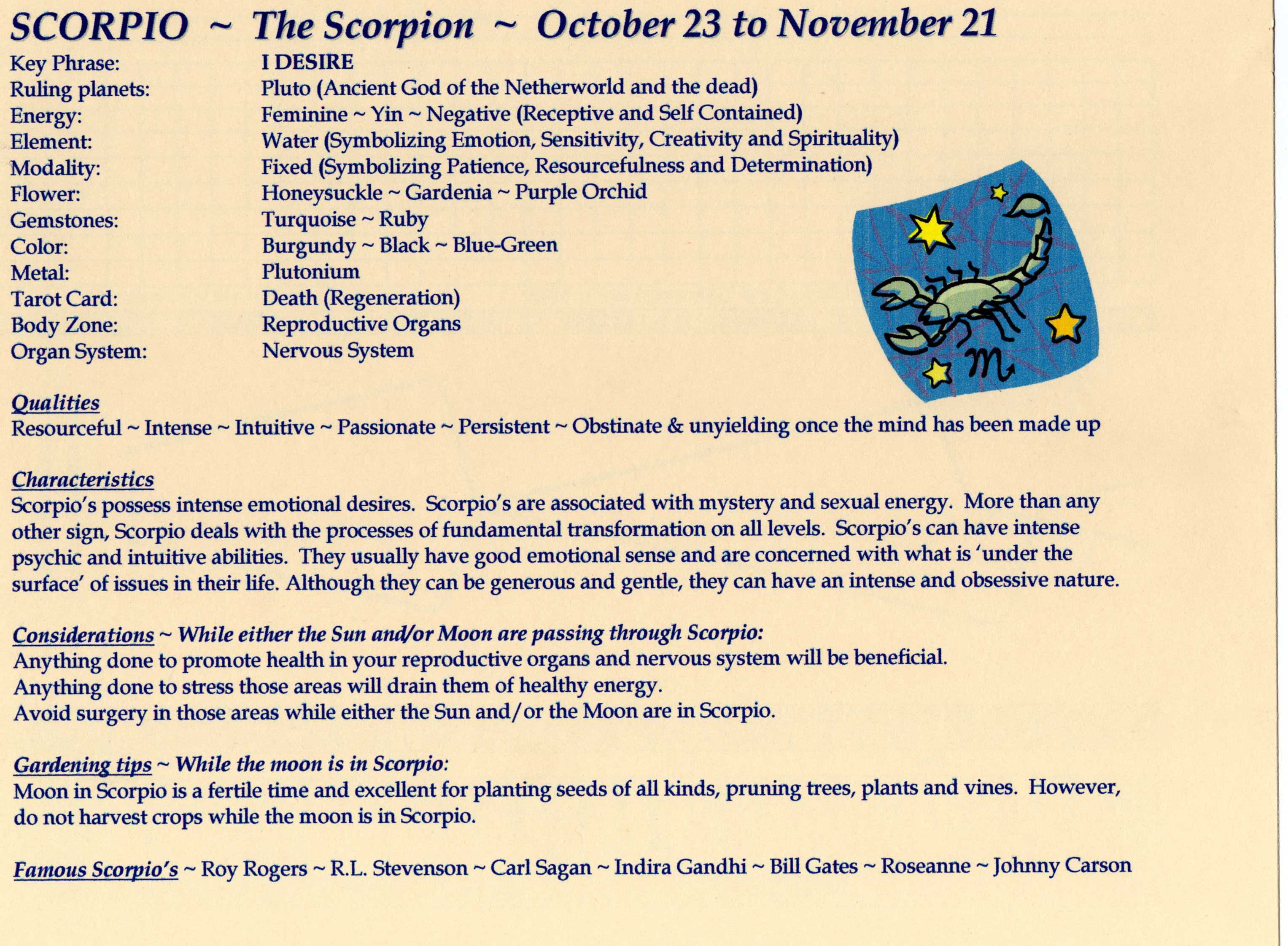 Below is a sample of the ASTROLOGICAL NARRATIVE that is on the top half of each calendar month. For instance, this page would be at the top of the calendar month of November, because the sun is in Scorpio for most of November.